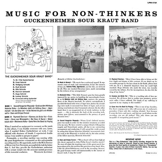 Guckenheimer Sour Kraut Band - Music For Non-Thinkers (LP) (VG)