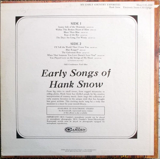 Hank Snow - My Early Country Favorites (LP) (G+)