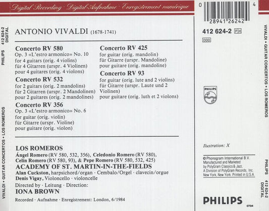 Antonio Vivaldi, The Romeros, The Academy Of St. Martin-in-the-Fields, Iona Brown - Guitar Concertos [CD CD] (VG+)