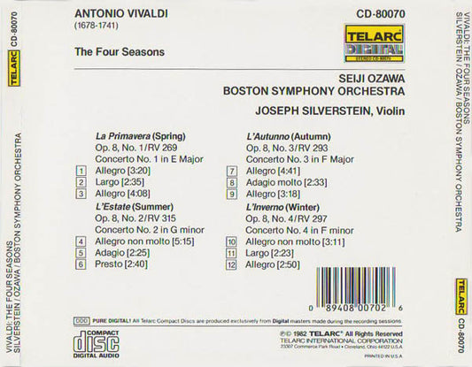 Antonio Vivaldi - Seiji Ozawa, Boston Symphony Orchestra, Joseph Silverstein - The Four Seasons (CD) (VG+)