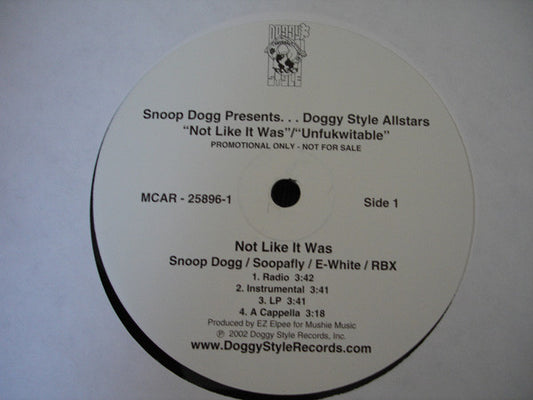 Snoop Dogg Presents... Doggy Style Allstars - Not Like It Was / Unfucwitable (12") (VG+)