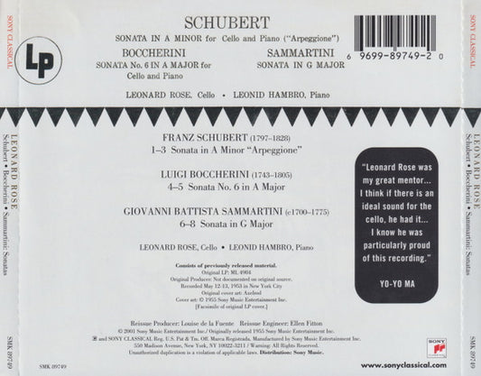 Leonard Rose, Leonid Hambro, Franz Schubert / Luigi Boccherini / Giovanni Sammartini - Sonatas [CD CD] (VG+)