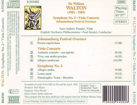Sir William Walton, Lars Anders Tomter, English Northern Philharmonia, Paul Daniel - Symphony No. 2 • Viola Concerto • Johannesburg Festival Overture [CD CD] (NM or M-)