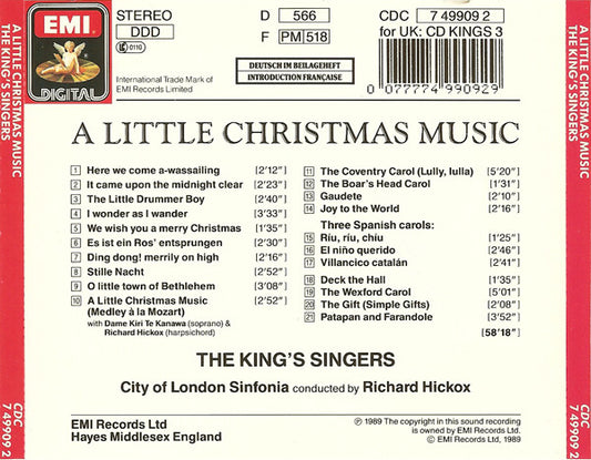 The King's Singers With Special Guest Kiri Te Kanawa, City Of London Sinfonia · Richard Hickox - A Little Christmas Music (CD) (VG)