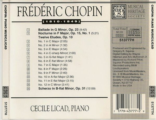 Frédéric Chopin - Cecile Licad - Chopin: Piano Music (CD) (VG+)