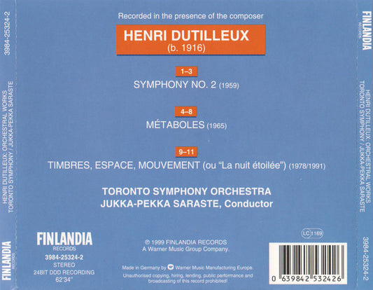 Henri Dutilleux, Toronto Symphony Orchestra, Jukka-Pekka Saraste - Symphony No. 2 • Métaboles • Timbres, Espace, Mouvement [CD CD] (VG+)