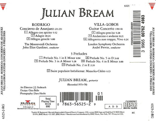 Joaquín Rodrigo, Heitor Villa-Lobos, Julian Bream - Concierto De Aranjuez / Guitar Concerto / 5 Preludes (CD) (VG+)