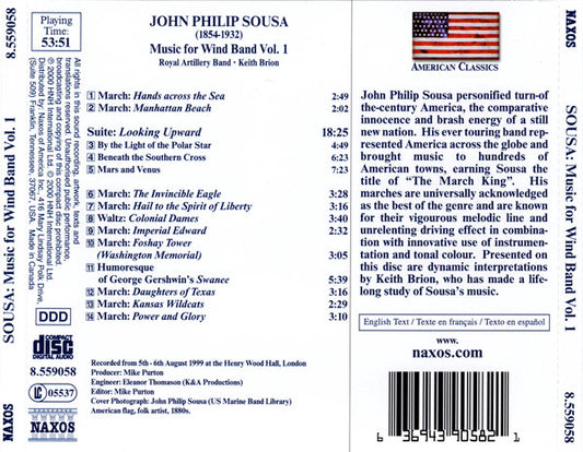 John Philip Sousa, The Band Of The Royal Artillery, Keith Brion - Music For Wind Band, Volume 1 (CD) (VG)