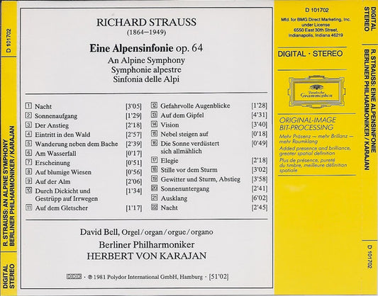 Richard Strauss, Berliner Philharmoniker • Herbert von Karajan - Eine Alpensinfonie = An Alpine Symphony = Symphonie Alpestre [CD CD] (VG+)