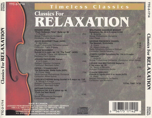 Various - Classics For Relaxation [CD CD] (VG+)