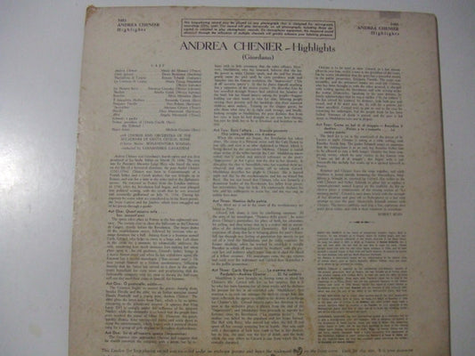 Umberto Giordano, Mario del Monaco, Renata Tebaldi, Ettore Bastianini, Coro dell'Accademia Nazionale di Santa Cecilia And Orchestra dell'Accademia Nazionale di Santa Cecilia, Gianandrea Gavazzeni - Andrea Chénier (Highlights) (LP) (VG)