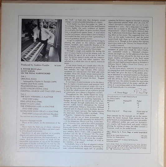 E. Power Biggs Plays Scott Joplin - E. Power Biggs Plays Scott Joplin On The Pedal Harpsichord (LP) (G+)