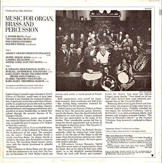 E. Power Biggs, The Columbia Brass And Percussion Ensemble, Maurice Peress - Music For Organ, Brass And Percussion (LP) (VG)