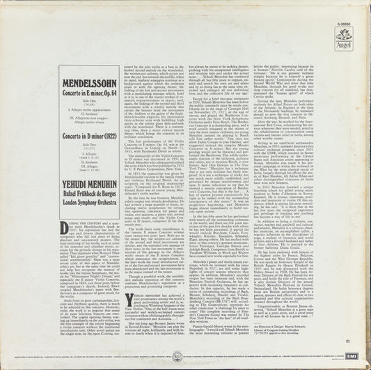 Felix Mendelssohn-Bartholdy, Yehudi Menuhin, Rafael Frühbeck De Burgos, London Symphony Orchestra - Concerto In E Minor, Op.64 / Concerto In D Minor (1822) (LP) (VG+)